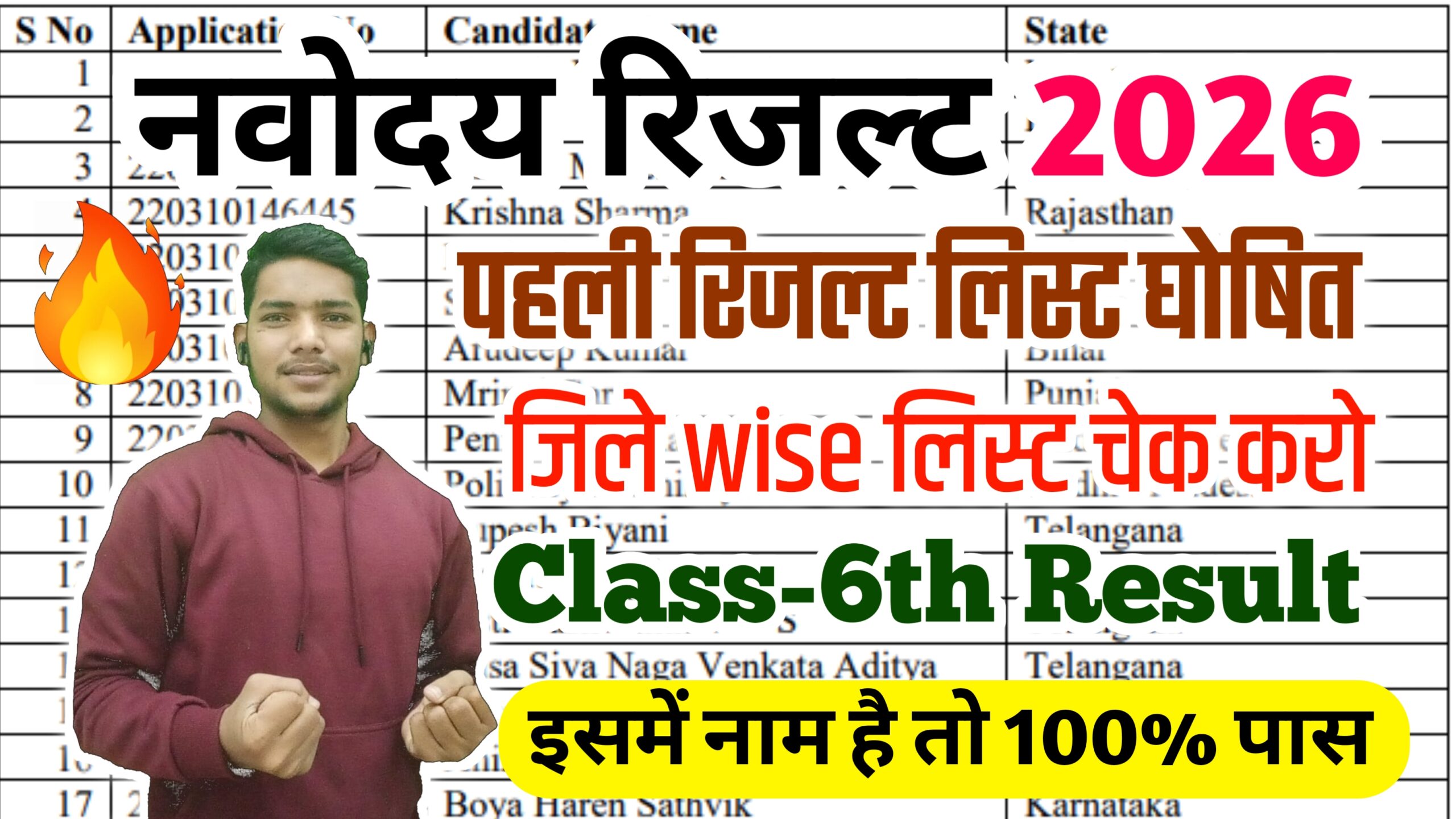 Navodaya Vidyalaya Class 6th Result 2026 District Wise Result PDF Download Now